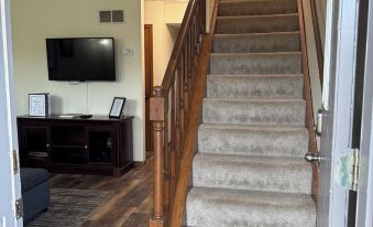 Charming 2-Story apartment that has free wifi, beds, appliances, smart tv, coffee maker and a fully stocked kitchen. Sits on a quiet street right in town close to restaurants and 15 minutes from the Ark Encounter. Half way point between Cincinnati and Lexington where other fun activities are located. The lower level has a living room (pull out couch & ottoman sleeper), half-bath, kitchen, dining room table (6 guest), and the laundry room. The upper level has 2 bedrooms (queen beds) and a full bathroom (tub/shower combo).About pets:No pets allowed.About checkOut:Check out before 11:00 AM.About children:Children allowed: ages 0-17.About checkIn:Check in after 4:00 PM.About smoking:Smoking is not permitted.About minBookingAge:Minimum age to rent: 18.About events:No events allowed.