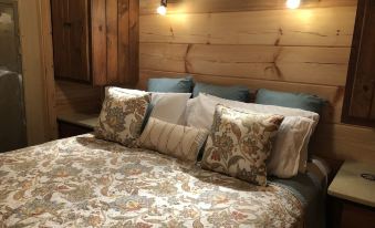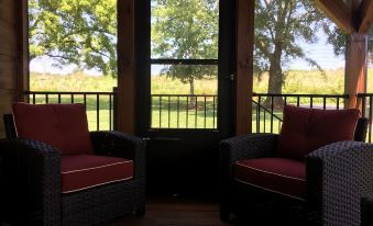 Walnut Grove Cabin consists of an airy full kitchen with stainless steel appliances, cozy bedroom with comfortable king size bed, a futon and two relaxing porches (one is screened-in!). Amenities include double closet in bedroom with additional storage, wi-fi, two TVs with DIRECTV, a cordless phone, and a paved driveway with carport. Towels and linens are furnished. Free coffee, hot tea and hot chocolate.