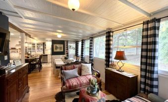 Location location at the base of Pikes Peak 14,110 foot summit (known as America's Mountain because the song "America The Beautiful" was written atop this mountain) on the hiking and horse trails, paved road, flat paved driveway and paved walkways. Only two blocks to the town center/lake and the picturesque historical town of Green Mountain Falls on Pikes Peak. In the heart of gold medal fly fishing, hunting and all sportsman's activities. Wildlife visitors of eagles, hawks and deer, views, sounds and aroma of cool mountain air and the well known Colorado blue skies surround you. Within an hour and half from world class skiing and hot springs resorts. A short beautiful drive down the mountain 15-20 minutes to Colorado Springs top attractions like The Garden of the Gods, The US Olympic training center (tours available), Cheyenne Mountain Zoo, Multiple museums: Mining, Fine Arts Center, Sports and Parks etc... Spas, The historic Broadmoor Resort, art galleries, outdoor and fine dining nearby. Colorado Springs airport 30 minutes away. Denver airport 1.5 hours away. Every room in the home has been updated/remodeled by an interior designer. We are offering the main house and guest house together for your combination of friends/family to enjoy a private resort setting. All windows have black out/privacy window treatments. Smart TV's in all bedrooms and in the two living spaces- family room with wood burning fireplace . Pella windows, open and enjoy the cool breeze and the sound of the stream and waterfalls in the private backyard. This wood and stone home was built in 1930 by an iconic American family as their summer home. Our family has owned it since the 1960's as our summer home, it has never been available as a vacation rental until now. Our family has vacationed and owned cottages on this same street in Green Mountain Falls for over 100 years -- we hope you'll be our guests and experience what makes this one of a kind place so very special to the hearts of all who've experienced vacationing and visiting this home. Turo Subaru small suv AWD available for discounted rent brought to house if needed