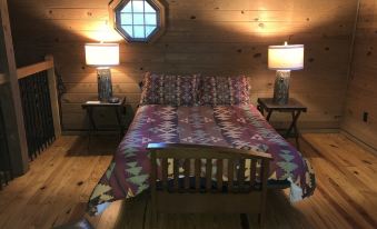 Our cozy two-story cottage with a loft and wraparound porch is comfortably furnished for a relaxing getaway. Located near the horse stables, the cottage offers easy parking and views of the barn, paddocks, 60-foot round pen, and natural pond. A wooded border behind the cottage adds privacy and a sense of peaceful seclusion—perfect for nature lovers and stargazers alike. In the evenings, guests can gather around the outdoor firepit to enjoy the fresh mountain air and quiet country skies.