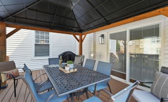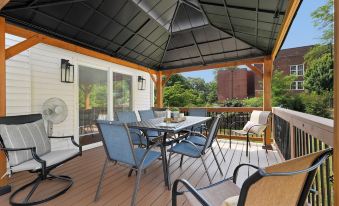 The Living Room sets the stage with generously sized Leather Furnishings and a Dancing Gas Fireplace w/ remote, for those cooler evenings. The Formal Dining Room has a beautiful dining table (accommodates 8 to 10) for Formal Dining and/or for Special Events such as Bridal or Baby Showers, or Family Get Togethers. The Sleek & Modern Kitchen features Granite Backsplashes & Countertops, Top of the Line Appliances to include a kitchen aid slide-in range with downdraft and is stocked with all high quality cookware, dishes, and coffee pot with essentials. There is a Sunny Bedroom on the Main level (Queen Bed) for guests who prefer no stairs, with easy access to the Main level Full Bath. Staircase is Original to Home and is a bit steeper.