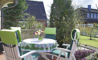 The apartment on the ground floor (95 sqm) is ideal for 2 to 4 people. In the wonderfully large living area with dining area and terrace, you can sit by the fireplace in the evening, have a cozy TV evening or spend the mild summer nights barbecuing. A bathtub in the bathroom completes your nice day of vacation. A shower, 2 toilets, 2 bedrooms and a cozy real wood kitchen with washing machine and dryer offer you the comfort you need for optimal relaxation.About pets:No pets allowed.About checkOut:Check out before 10:00 AM.About children:Adults only.About checkIn:Check in after 3:00 PM.About smoking:Smoking is not permitted.About events:No events allowed.