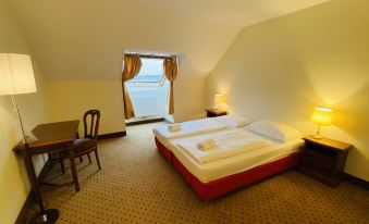 This is a basic hotel with very basic facilities. Bed ok, shower, ok. that's all you get. TV only in German. No water in the rooms, No coffee Tea etc. Tourist hotel so when the coach's are visiting, be aware get to breakfast very early or there will be nothing or little to eat.
