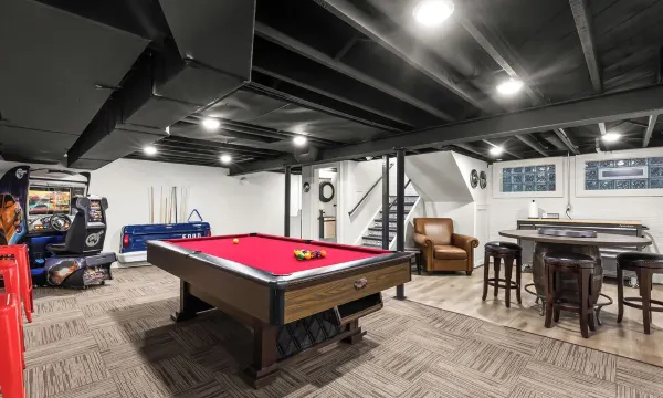 We had a great time at this house. There are 9 beds in the house and there is ample space to spread out. The dining area flows directly into the sitting/living area making it perfect to have a conversation with someone in the dining room. The basement was also a great place to hang out with the pool table and racing games. We definitely had a great time here.