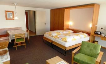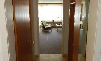 Practically and simple furnished studio. Living/dining room with dining table, sofa, TV and cabinet/fold-away bed (2 single beds, each 90x200cm). Small separate kitchenette (among with coffee machine with capsules and fondue-set). Bathroom with bathtub/toilet. Washing machine and tumble dryer for common use upon request. Wifi.