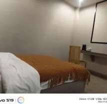 廣安入住一夜,酒店位置挺好找的,前台辦理很快,上樓需要刷卡,安全性挺好的,過天橋有不少吃飯的小店。 房間面積還可以,雖然沒有窗户也沒什麼異味,投影看電影也不錯,有免費的瓶裝水,整體沒什麼問題。