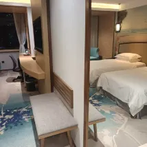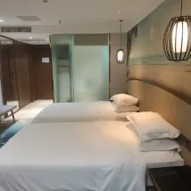 Отель расположен в хорошем месте, рядом с множеством достопримечательностей, ресторанов и пешеходных улиц (пешеходная улица Пекин-роуд, торговый центр Tee Mall, башня Гуанчжоу, зоопарк Гуанчжоу), а также удобным транспортным сообщением. Он находится рядом со станцией метро, до которой можно дойти всего за 5 минут. Сотрудница стойки регистрации Хуахуа — приветливая, внимательная, ответственная и дружелюбная. Вестибюль оформлен в стильном и элегантном стиле. Как только вы подойдете к стойке регистрации, радушный дворецкий подаст вам теплый красный финиково-имбирный чай. Мне понравилась комната, которую мне выделили. Впечатляющие ванные комнаты оснащены тропическим душем, разделением сухого и влажного, высококачественными туалетными принадлежностями и мягкими полотенцами. В каждой комнате большие окна. Номера отеля чистые и гигиеничные, с прекрасной обстановкой, всеми удобствами и стильным декором. Красота, тщательно продуманная дизайнером, отражена повсюду. Находясь в такой обстановке, усталость уходит, а настроение естественным образом улучшается. Внимание отеля к деталям проявляется во всем. В целом, услуги и удобства этого отеля очень хорошие, он предлагает пятизвездочный сервис и очень экономичен. Стоит порекомендовать всем!