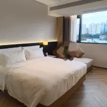 Это очень хороший отель, в котором я недавно останавливался. У меня остались очень приятные впечатления от пребывания в этом отеле. Когда я вошел в вестибюль, персонал с энтузиазмом подошел, чтобы помочь мне с багажом, и налил мне чашку красных фиников, лонгана и чая из лайчи, что было восхитительно! В вестибюле гостям также предлагаются легкие закуски и фрукты. Вся процедура регистрации прошла очень гладко, а дворецкий из службы поддержки клиентов Синьсинь также помог мне доставить мой багаж в номер. Большое спасибо ~ Обстановка в отеле очень комфортная, и весь отель выглядит очень модно и аккуратно. Комната очень просторная и светлая, кровать удобная. Детям этот отель тоже очень нравится. Мы с детьми здесь хорошо выспались.