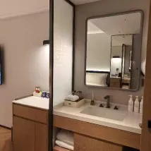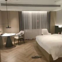 Это красивый отель недалеко от станции метро Yuangang. Отель оставил нам очень хорошие впечатления. Я путешествовал со своей семьей, и мы все были очень рады остановиться здесь. Сам отель просторный и светлый, кровати удобные, ванные комнаты чистые и хорошо оборудованы. В номере имеется набор туалетных принадлежностей из восьми предметов, включая очищающее средство для лица, средство для снятия макияжа, кондиционер, шампунь, гель для душа, лосьон для тела и т. д. В номере также есть умный помощник: Tmall Genie и кабель для передачи данных для мобильного телефона. Занавески для туалета и другие предметы также являются интеллектуальными и автоматическими. Отношение персонала отеля к обслуживанию также очень хорошее, особенно при регистрации заезда г-же налили чай, а на стойке регистрации положили несколько приветственных фруктов и закусок. тоже понравилось, и было довольно тепло.