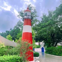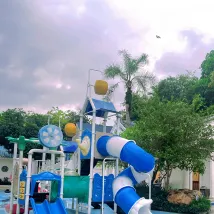 Оформление и планировка номера уникальны, с крыши можно смотреть на ночное небо. Парк оформлен в стиле лесной экологии. Здесь есть большой бассейн для серфинга (обратите внимание на время, когда включаются волны), различные небольшие бассейны с горячими источниками и стандартный бассейн с постоянной температурой. Вечером можно поужинать в ресторане в парке (рядом с бассейном с волнами). После ужина вы можете перейти дорогу напротив поместья и полюбоваться видом на реку.
