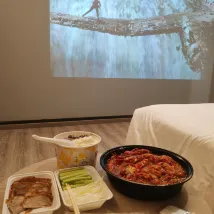 Проекционный экран огромный, во всю стену, и звук просто отличный. В отеле очень приятная атмосфера, нет никаких посторонних запахов. Звукоизоляция превосходная – во время просмотра фильмов снаружи практически ничего не слышно, что позволяет полностью погрузиться в действие. Смотреть кино в такой обстановке – одно удовольствие!