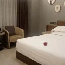 Номер был оформлен очень уютно и со вкусом. Постельное белье настолько комфортное, что с него не хотелось вставать. Я в полном восторге!
