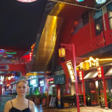 Метро в 5 минутах ходьбы, много ресторанов, торговый центр, магазины. Через дорогу парк развлечений. Удобно.