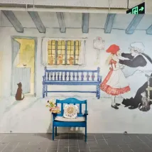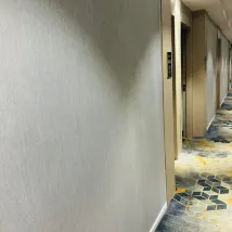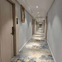 Настенные росписи в коридоре очень элегантные и изысканные, сразу видно, что владелец выбирал их с большим вкусом. Коридор светлый и просторный. Есть лифт, что очень удобно, когда у тебя много багажа. Поскольку отель расположен на верхнем этаже, открывается прекрасный вид, а воздух отлично циркулирует.