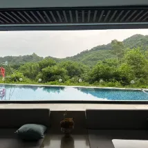 Вокруг отеля очень хорошая атмосфера. Красивый и открытый вестибюль. Бассейн находится прямо в вестибюле. Можно сразу же поплавать, переодевшись. Рядом с отелем протекает река Люси и зелёная дорожка. Администрация отеля очень внимательна и построила дверь рядом с бассейном на первом этаже. Выйти на зелёную дорожку можно, проведя картой от номера. Это очень удобно. Мисс Минся на стойке регистрации очень жизнерадостная и приветливая. В следующий раз я обязательно остановлюсь в отеле Yunya.