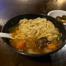 Завтрак, хотя и стоил всего 40 иен, предлагал неплохой выбор блюд, включая лапшу; рекомендую.