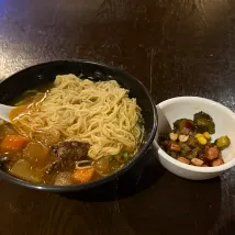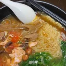 Завтрак ещё более восхитительный! Роллы с рисовой лапшой, креветочные клецки и каша – всё это настоящие кантонские вкусы, как и свежеприготовленная лапша и рисовая лапша, политые говяжьим супом, аромат которого просто жуёт! Также предлагаются хлеб в западном стиле, бекон и кофе, так что даже привередливые едоки найдут себе место.