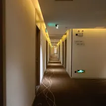 Коридор очень длинный и довольно тесный, общее впечатление не очень хорошее. Не рекомендуется оставаться.