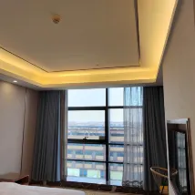 Обстановка в отеле очень комфортная. Недавно отремонтированные полы чистые и стильные. Звукоизоляция очень хорошая, удобства полностью оборудованы. Когда вы входите в номер, вы можете увидеть большие окна от пола до потолка. Вид на 10 этаж хороший, напротив фуд-корт, внизу ресторан, рядом много мест, где можно поесть, что соответствует пятизвездочному рейтингу.