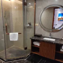 Номер в отеле очень просторный, а горячая вода относительно большая, что делает принятие душа более комфортным. Кроме того, в отеле также используется ЖК-телевизор высокой четкости. Когда вы не можете спать по ночам, номер очень просторный. Вы можете наслаждаться теми же визуальными эффектами, что и в частном театре. Детям было очень комфортно. Комната была очень чистой, и оформление было очень удобным. Отель расположен рядом с торговым центром, и делать покупки очень удобно. Звукоизоляция отеля очень хорошая, что обеспечивает спокойную атмосферу для отдыха. Обслуживающий персонал в отеле очень вежливый и позволяет вам чувствовать себя очень комфортно.