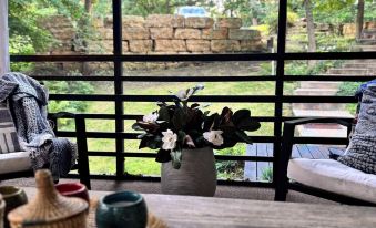 This property was absolutely perfect for our Trashy Romance Reading Retreat. There were multiple places to lounge throughout the house itself including multiple bedrooms, an upper landing with cozy couches, sun porch, back porch, fire pit, and quite possibly the world’s softest living room couch. We were able to Bluetooth hook up to the main TV for PowerPoint night, and the huge kitchen table was perfect for all our reading-related crafting! There is a lookout point just up the street from the property to take a great group selfie overlooking the bluff! Wow, just exactly what we were looking for in this trip!