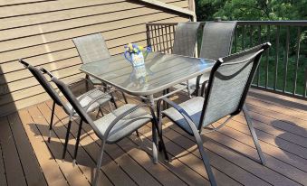 Great property for our purpose. My sister and her daughter were there for a stitching retreat. We each had our own bedroom and bath which were all equipped with many extras. Kitchen also well equipped and invluded some coffee tea and snacks. Townhouse well situated so it was like you were in a tree house on main floor. Nice deck and patio. Must go down some steps to get to property and parking is not right outside the door so good mobility is needed. We enjoyed the galena area and did a few activities between our stitching.