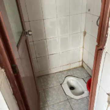 Все очень обветшалое, нет Wi-Fi, дверной замок не работает, в туалете нет света, туалет представляет собой отхожее место, нет раковины, есть курительная комната, грязные стены.