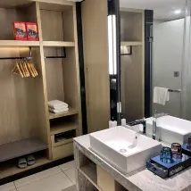 Обслуживание в отеле очень хорошее. Женщина на стойке регистрации была очень внимательна, когда я регистрировался. Она не только повысила категорию моего номера, но и подарила мне фрукт. Парковка очень большая и есть. также бесплатная услуга по доставке и высадке. Отлично. Вернусь в следующий раз!