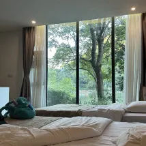 Я провёл здесь два дня. Номер был очень красивым, расположение – отличным, близко к горам и воде, окружающая среда – прекрасной, обслуживание в магазине также было очень хорошим. Зная, что мне нужно было рано утром сесть на автобус и лодку, они специально упаковали мне сухой завтрак с собой. В последнее утро перед отъездом я успел позавтракать в магазине, что тоже было здорово. Рисовая лапша была даже лучше, чем та, что я ел в магазине в центре города. Я чувствовал, что нет необходимости идти куда-то ещё, чтобы поесть рисовую лапшу, завтрак в магазине был превосходным. Единственный недостаток магазина – дверные замки, розетки и выключатели в номере немного старые, и вы можете подумать о замене их на более современные, но это не большая проблема. Такие красивые окна от пола до потолка, такой красивый пейзаж, всё тело и разум отдыхают.