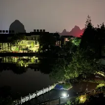 На этот раз, когда я ехал в Гуйлинь, друг порекомендовал мне остановиться в отеле Heshe, который находится недалеко от живописного района пещеры Тростниковой флейты. Как только я приехал в отель, я был поражен здешней обстановкой. Отель окружен горами и реками, окружен зелеными деревьями и цветами. Горы сбоку и большое озеро перед входом изолируют городской шум, заставляя людей чувствовать себя особенно тихо. При входе в комнату озеро и горы за окном кажутся пейзажной картиной. Помещение оснащено полным набором оборудования для чайной церемонии и татами, что очень удобно. Постели и полотенца очень чистые, что самое главное при проживании в отеле. Останавливались на два дня и очень хорошо спали ночью, возможно, потому, что было тихо и богато кислородом. Встаньте утром и прогуляйтесь по тропинке на берегу озера, чтобы насладиться красотой природы.