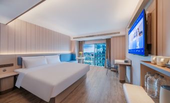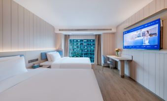 The hotel is located in Area C of Guiyang Vanke Jade Pride, Jinyang Street, Guanshanhu District, Guiyang City, situated in the core area of Guanshanhu District. The hotel is adjacent to the Guiyang Olympic Sports Center (with a seating capacity of about 60,000, a venue for concerts), the International Convention and Exhibition Center (site of the Big Data Expo, Wine Expo, and large exhibitions), the Qilong Guizhou Tower (a landmark office building), Guanshanhu Park (hosting music festivals and lantern festivals), the Guiyang Municipal Government, the Geological Museum, and the Guizhou Provincial Museum. Nestled in a bustling yet tranquil location, the hotel is near Subway Line 2, the Guiyang International Trade Jiufu City Shopping Center, the Wanda Plaza (Guanshanhu Store), Hong Street Night Market Food Street, Guiyang No.1 High School, the popular CCP APK Street, Cloud Ark, Guiyang Karst Park, Yueshan Lake Wetland Park (an outdoor camping spot), Guiyang Happy World, Quan Lake Park, and Jinyang Hospital (a second-class hospital). It is 8 kilometers from Guiyang North Railway Station, with an estimated 16-minute drive; 12.4 kilometers from Guiyang East Railway Station, about a 26-minute drive; 21 kilometers from Guiyang Longdongbao Airport, approximately a 40-minute drive; and 8.5 kilometers from Jinyang Bus Station, around a 20-minute drive. The hotel has a total of 112 rooms, with a business office area and a self-service coffee and beverage station in the lobby on the first floor, a self-service breakfast restaurant on the twelfth floor offering HanTing's signature Stress-Relieving Soup Tofu, Guizhou-style Spicy Chicken Rice Noodles, and Glutinous Rice, as well as a self-service laundry room equipped with washing machines, dryers, and steamers. As part of the Huazhu Group's HanTing 3.5 version, the hotel boasts high aesthetics, self-service features, and ease of operation, making it a welcoming retreat for the people of the nation!