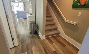The 1st floor has a queen bedroom with a private deck. Includes flat-screen cable TV & DVD. Full bathroom is also on the main level