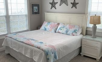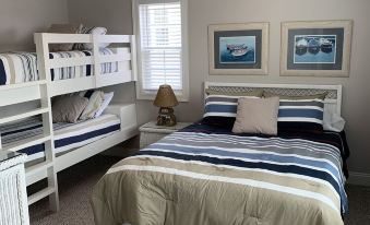The spacious kitchen is newly updated, from the high-end stainless appliances to the solid surface counters. Three bedrooms have brand-new luxurious king bedding and flat-panel smart TV's. The fourth bedroom has built-in bunks and a brand-new queen bed. En suite bathrooms adjoin two master bedrooms, and the third and fourth bedroom share a guest bath.