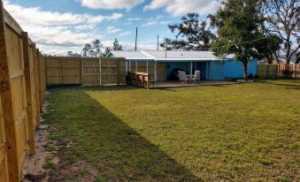 Enjoy this beautifully renovated and updated pet friendly cottage 3 blocks from the beach. Entire property has been renovated with new appliances, furniture and landscaping. Three bedrooms and 1 full bathroom located inside; one full bathroom located outside on deck to use after a day at the beach. The carport and driveway have plenty of room for parking a boat and multiple vehicles. Backyard has a large deck with outdoor seating and grill. Backyard is fully fenced.