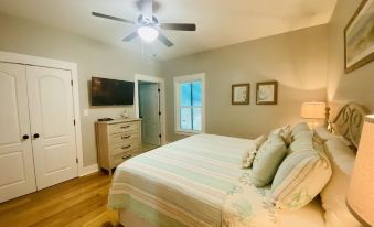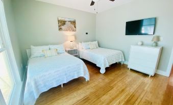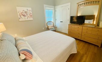 This adorable cottage is decorated in calm and comfortable coastal decor. The living room features two leather sofas and a recliner perfect for watching the 65 inch 4K Smart TV. There are board games, playing cards, and puzzles for entertainment. The dining room comfortably seats 6 at the table with 2 additional seats at the bar. The kitchen is fully stocked for preparing family meals. Kitchen includes stainless appliances, toaster, Keurig (k-cup/drip combo) coffee maker, blender, and crockpot. All items needed for cooking and serving are provided. There is a large pantry for storage and laundry area with full size washer and dryer.