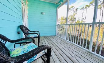 The screened porch is perfect for relaxing or reading your favorite book. There is also an outdoor shower for rinsing your feet and beach gear after a fun day on the water.