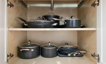 Kitchen: has dishwasher, microwave, oven, toaster, stand mixer, blender, coffee pot, all pots pans and cooking utensils, glassware and cocktail ware (plastic for safety), panini press, waffle iron and more. We provide soap and spices and cooking spray. Gas grill downstairs with propane tanks. Message for anything specific you need.
