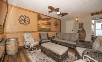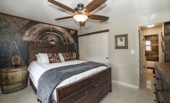 The Wine Cellar is a two-bedroom one-bath with a full kitchen. You can enjoy the outdoors with the propane fire pit provided or sit back in the large enclosed patio enjoying the game room. Your dog will enjoy a private enclosed yard just for them. The Wine Cellar has a four-car driveway and plenty of street parking in a well-lit safe area. The driveway is big enough to fit an RV, Boat, or trailer but there are additional fees for such parking.