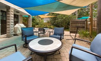 With a parlor-style living space and private, tropical patio, there’s no shortage of spaces to relax. And you’ll do so in style: preserved Shaker touches and cool coastal décor offer the ideal blend of laid-back beach vibes and old-school Florida elegance.