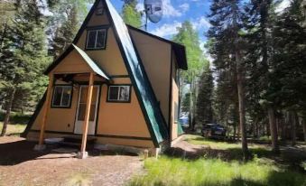Relax with family and friends in this peaceful place in the mountains. This getaway is nested in the middle of nature. This cute A frame cabin is warm and cozy and a great place to make memories. Enjoy the wood burning stove with a cup of hot coco at night or roast S'more's on the campfire. Enjoy the view of the deer in the mornings out of one of the many windows. This cabin is a place to get away and enjoy nature. There are 2 lakes to fish and tons of trails to hike and forest to explorer.