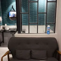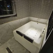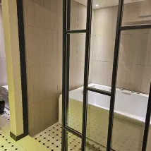 Большая гидромассажная ванна непригодна для использования, так как ее невозможно чистить (с той стороны, где находится гидромассажная ванна, нет душа, так что, по крайней мере, вы не сможете самостоятельно смыть пыль).