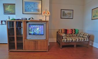Blast from the Past Entertainment: A living room decked out with VHS tapes, a tube TV.Perfect for movie marathons or playing games.