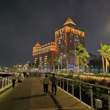 Идеальный выбор для путешественников, стремящихся погрузиться в историю города. Вы находитесь в самом начале знаменитой пешеходной улицы Хайкоу. Рядом множество ресторанов, сувенирных лавок и магазинов модной одежды. Отель предлагает разные варианты размещения. Мы выбрали комнату с большой кроватью и окнами на улицу, вечером было немного шумно, но плотные шторы и наушники обеспечили нам спокойный отдых. Номер оснащен самым современным оборудованием, особенно порадовал говорящий туалет )))). Белье чистое, уборка номера и замена полотенец каждый день. Персонал очень приветливый. Если вы понимаете и любите особенности китайского сервиса, то мы настоятельно рекомендуем этот отель!