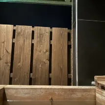 Приватный на улице, с одной стороны здорово, но раздевалка тоже практически на улице, не в каждый сезон комфортно.
