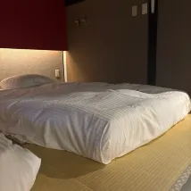 Необыкновенный опыт пребывания в традиционном японском отеле. Комната была чистая и уютная, постель свежая и удобная, в комнате был чайник и все принадлежности для умывания. Ужин сытный (рыбные закуски, суп со свининой, салат с лососем и тунцом и ещё много чего непонятного, но интересного). Завтрак нам не понравился, так как просто не привыкли есть супы и рыбу утром. Взяли приватный онсен на 45 минут за 1650 иен + 300 иен налог, понравилось, но учтите, что вода в нем очень горячая. В лобби бесплатная вода, кофе, саке, на втором этаже бесплатные массажные кресла.