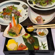 Достаточно большой и старенький отель - рекан в Хаконе. Прекрасное расположение на круговом живописном маршруте. Сам отель, как бы это сказать… по атмосфере в целом поразительно напоминает гостиницу Машук в Пятигорске ))) ну или любую гостиницу или базу отдыха образца 90х. Онсен и приватный (на улице) и общий (в помещении) хороши. Кожа после этой минеральной воды действительно становится шелковой. Мой первый в жизни ужин кайсеки был красивый и сопровождался хорошо оформленным меню, но, не вдохновил на дальнейшие. Предоставляются юкаты и подробная инструкция как их носить. В моем номере был на балконе душ и деревянная ванна. Приниматься душ утром там было особым удовольствием.