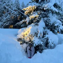 Детская площадка очень веселая. Ребёнку нравится играть в снежки. Ужин во французском ресторане хорош. Онсэн великолепен.