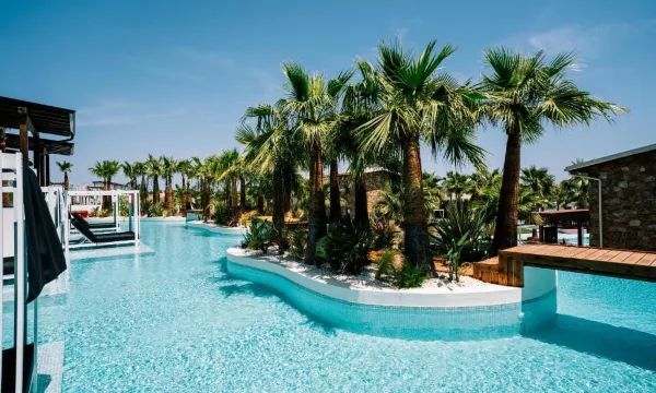 3-Sterne-Hotel ist völlig unterbewertet. Das Apartment-Resort ist auf höchstem 5-Sterne-Niveau gebaut und ausgestattet. So etwas findet man in Griechenland nur selten. Die Anlage ist sehr grün, mit unzähligen Palmen und einem gepflegten Garten. Sie erinnert eher an ein großes Marken-Collection-Resort. Auf jedes Detail wurde geachtet: WLAN im Zimmer, Streaming auf modernen Fernsehern, voll ausgestattete Küche, Fliegengitter gegen Insekten, Schminktisch, große Spiegel, Steckdosen am Bett, moderne Klimaanlage, hochwertige Badausstattung und tägliche Zimmerreinigung. Es gibt verschiedene Zimmertypen: ohne Pool mit Gartenblick mit Gemeinschaftspool mit privatem Pool Im Resort selbst gibt es 2 Pools mit ausreichend Liegeplätzen. Die Apartments mit Gemeinschaftspool verfügen über einen sehr großen Pool zum Schwimmen, direkt vor den Zimmern. Die Zimmer mit privatem Pool haben einen großen Pool die Mittig getrennt sind, so dass keiner zur anderen Seite schwimmen kann. Von der Ausstattung her sind alle Zimmer identisch modern eingerichtet. Supermärkte und Cafés erreicht man in etwa 8 Minuten zu Fuß, den Strand in rund 10 Minuten. Die Anlage ist eine klare Empfehlung für 2026. In der gesamten Umgebung gibt es nichts Vergleichbar-Attraktives. Wir haben unseren Aufenthalt deshalb vor Ort auch verlängert.