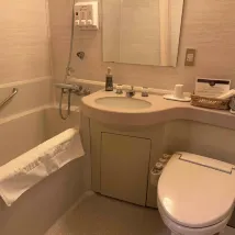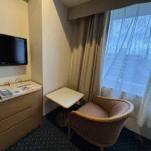 The hotel had a great location, visible from the station. It is a very big hotel, but a bit old. The room was spacious and had all the basic necessities. I appreciated that it had a large bathtub as well. Unfortunately, I was there for a concert, so I didn’t spend much time exploring the facilities or interacting with the staff, but what little I did, I didn’t find anything lacking. For the first night, there was a complimentary water bottle, but on the second night there was not. Also, I would have appreciated the bathroom amenities to be restocked on the second day, although they did have additional amenities available in the lobby. I also liked that they had a Key Coffee drip coffee in the room (this was restocked the next day). All in all, it was a positive experience in a slightly retro hotel.