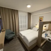 Hotel samoobsługowy, check in przebiegł bez problemu. Pokój czysty, posiadał wszystko potrzebne udogodnienia, aneks dobrze wyposażony. Mieliśmy jedynie problem gdy chcieliśmy wyjść to okazało się, że drzwi od pokoju nie zamykają automatycznie. Po kontakcie z infolinią zmieniono nam od razu pokój wiec załatwienie tego przebiegło sprawnie. Ekipa sprzątająca w dniu wymeldowania przychodziła kilka razy przed 11 żeby sprawdzić czy już nas nie ma, co było trochę uciążliwe.